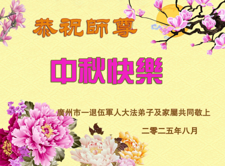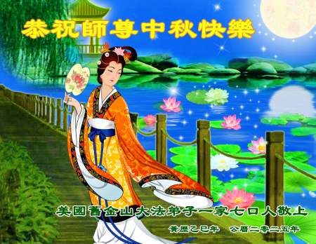 Một đệ tử Đại Pháp là cựu quân nhân tại Quảng Châu cùng gia quyến kính chúc Sư tôn từ bi và vĩ đại Trung Thu vui vẻ!