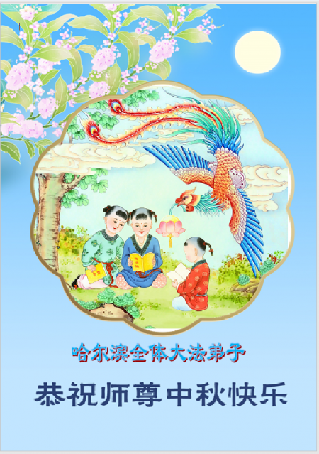 Toàn thể đệ tử Đại Pháp tại Cáp Nhĩ Tân kính chúc Sư tôn Trung Thu vui vẻ!