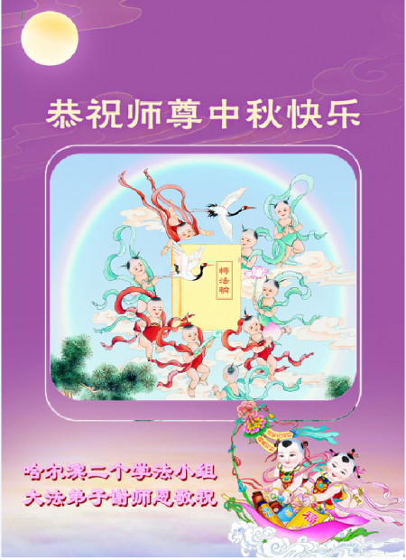 Đệ tử Đại Pháp thuộc hai nhóm học Pháp tại Cáp Nhĩ Tân kính chúc Sư tôn từ bi vĩ đại Trung Thu vui vẻ!