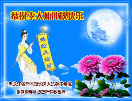 Hai chị em người thân của đệ tử Đại Pháp tại Giai Mộc Tư, tỉnh Hắc Long Giang kính chúc Đại sư Lý Trung Thu vui vẻ!
