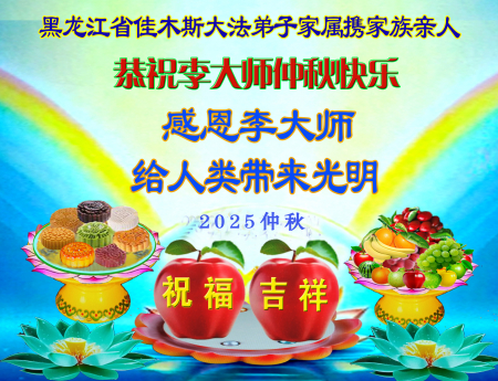 Đệ tử Đại Pháp cùng cả nhà tại địa khu Giai Mộc Tư, tỉnh Hắc Long Giang chúc phúc Sư tôn Trung Thu vui vẻ!
