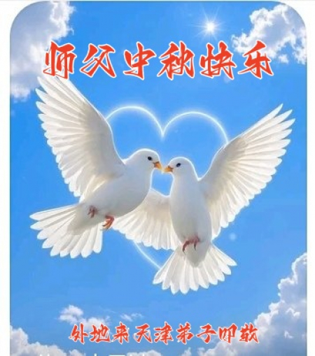 Kính chúc Sư tôn từ bi vĩ đại Trung Thu vui vẻ! Ngàn vạn ngôn từ cũng không cảm ơn hết được ân điển vô thượng của Sư tôn! Cảm tạ Sư phụ Phật ân hạo đãng! Ban phúc cho chúng sinh! Cảm ân không tận sự từ bi khổ độ của Sư tôn. Pháp Luân Đại Pháp hảo, Chân Thiện Nhẫn hảo!