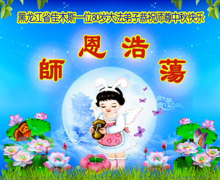 Một đệ tử Đại Pháp 80 tuổi địa khu Giai Mộc Tư, Hắc Long Giang kính chúc Sư tôn Trung Thu vui vẻ!