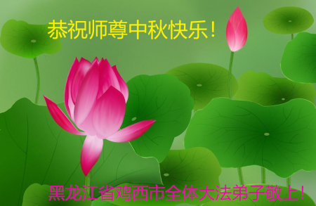Toàn thể đệ tử Đại Pháp tại thành phố Kê Tây, tỉnh Hắc Long Giang kính chúc Sư tôn Trung Thu vui vẻ!