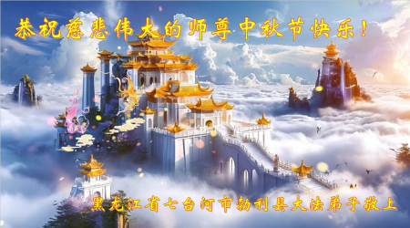 Nhân dịp Tết Trung Thu, chúng đệ tử mong ngóng Sư tôn sớm ngày trở về quê hương, chúng đệ tử sẽ nỗ lực hết sức mình, tu tốt bản thân, cứu nhiều người, hoàn thành sứ mệnh của bản thân. Mong chúng sinh nơi quê hương đều có thể đồng hóa với Đại Pháp, được Đại Pháp cứu độ. Chúng đệ tử cảm ân Sư tôn từ bi khổ độ, theo sát Sư tôn trở về gia viên của mình.