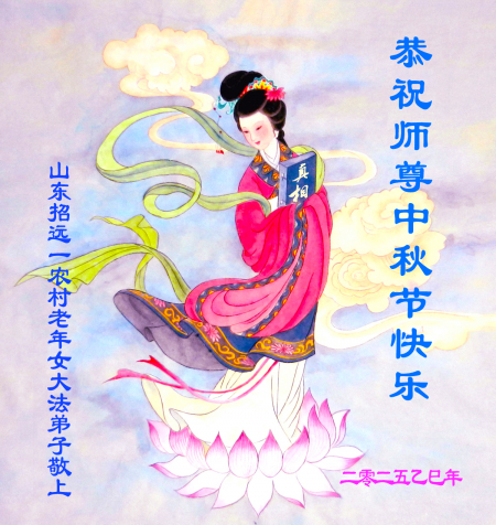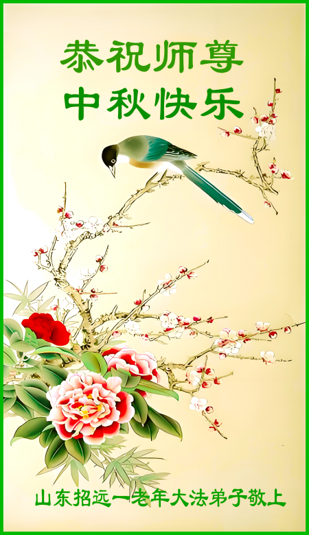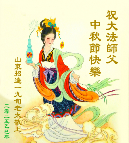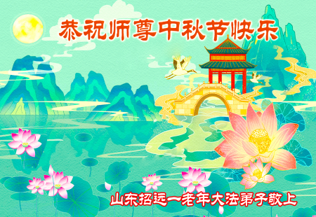 Một đệ tử Đại Pháp lớn tuổi ở thành phố Chiêu Viễn, Yên Đài, tỉnh Sơn Đông kính chúc Sư tôn Trung Thu vui vẻ!