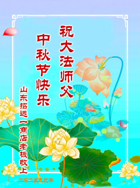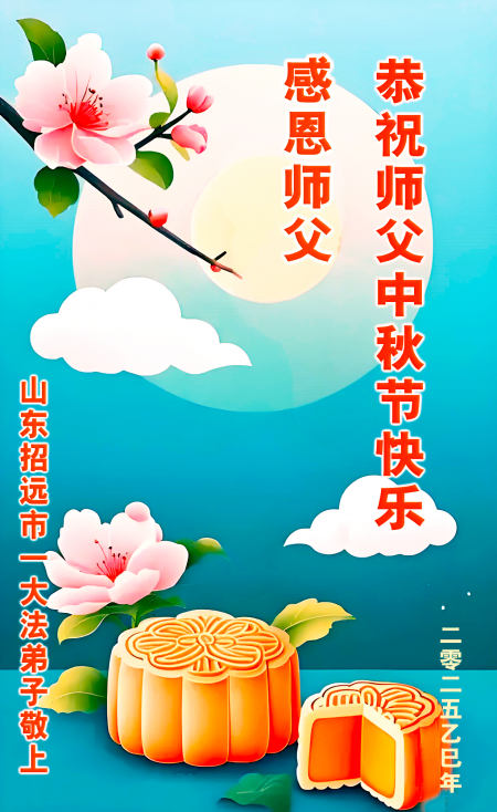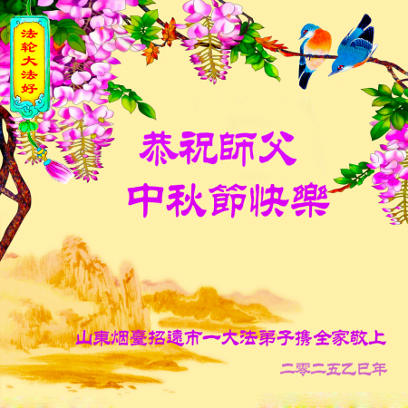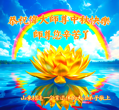Một đệ tử Đại Pháp làm doanh nghiệp đã nghỉ hưu tại Chiêu Viễn, Yên Đài, tỉnh Sơn Đông kính chúc Sư tôn Trung Thu vui vẻ!