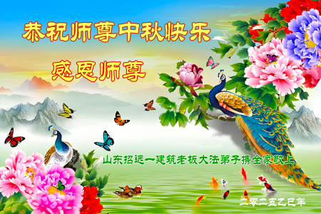 Một đệ tử Đại Pháp là chủ của công ty xây dựng cùng toàn thể gia đình từ Chiêu Viễn, tỉnh Sơn Đông kính chúc Sư tôn vĩ đại Trung Thu vui vẻ!