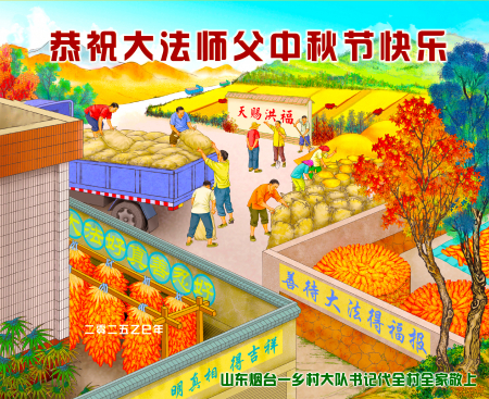 Bí thư đảng của một thôn đại biểu cho tất cả các gia đình trong thôn tại Yên Đài, tỉnh Sơn Đông kính chúc Sư phụ Đại Pháp Trung Thu vui vẻ!