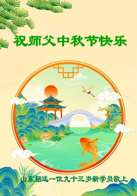 Một đệ tử Đại Pháp lớn tuổi từ Chiêu Viễn, Yên Đài, tỉnh Sơn Đông kính chúc Sư tôn Trung Thu vui vẻ!