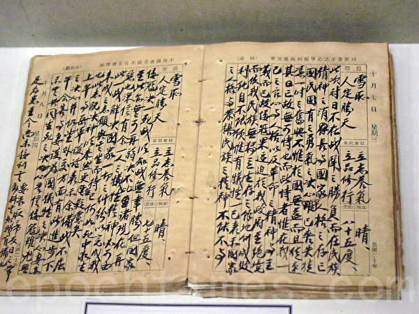 Nhật ký Tưởng Giới Thạch. (Ảnh Tào Cảnh Triết/ The Epoch Times)