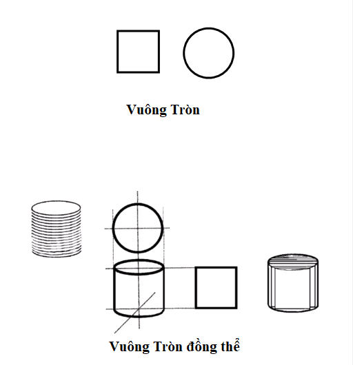 Thực tế đúng là như vậy, trong không gian phẳng hai chiều, hình vuông chính là hình vuông, hình tròn là hình tròn. Đã là hình vuông thì không thể là hình tròn, và ngược lại cũng vậy. Nhưng nếu ta lần nữa nhìn vào bức hình “vuông tròn đồng thể”, tin rằng độc giả sẽ mỉm cười hiểu ra: Đúng là vừa vuông vừa tròn, là tròn mà cũng là vuông.