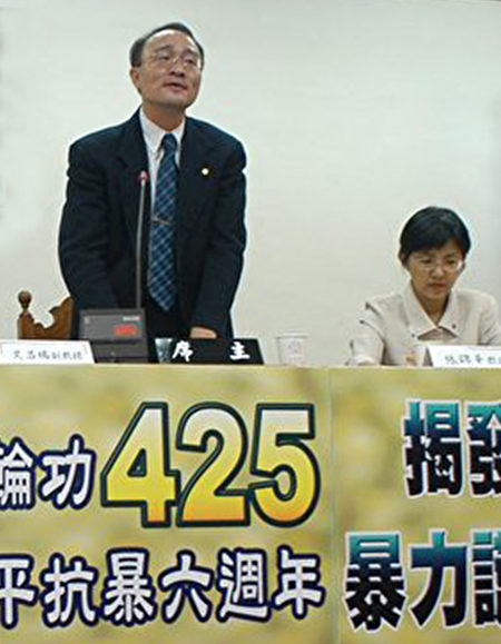 Năm 2005, Giáo sư Ngải Xương Thụy tham dự tọa đàm “Kỷ niệm sáu năm sự kiện Pháp Luân Công ngày 25/4 ôn hòa phản bạo lực — Vạch trần bản chất bạo lực và dối trá của ĐCSTQ”. (NXB Bác Đại cung cấp)