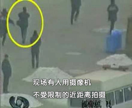 Nếu cho chiếu chậm cảnh quay này của CCTV, chúng ta có thể thấy Lưu Xuân Linh, “kẻ tự thiêu”, đã bị một vật dài và nặng đập rồi ngã xuống đất.