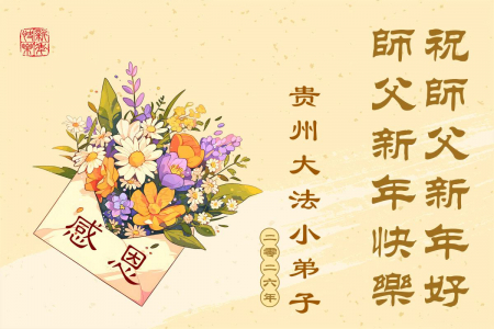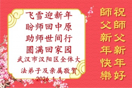 Nhân dịp Tết Nguyên Đán 2026 đang đến gần, đệ tử Đại Pháp tại Hoài An, Giang Tô xin gửi lời vấn an Sư tôn! Kính chúc Sư tôn năm mới vui vẻ!