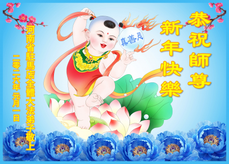 Toàn thể đệ tử Đại Pháp tại thành phố Trú Mã Điếm, tỉnh Hà Nam kính chúc Sư tôn từ bi vĩ đại năm mới vui vẻ!