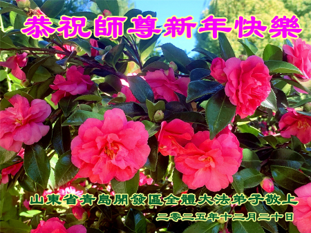Toàn thể đệ tử Đại Pháp tại Khu Phát triển Thanh Đảo, tỉnh Sơn Đông kính chúc Sư tôn năm mới vui vẻ!
