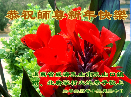 Các đệ tử Đại Pháp tại thành phố Nhũ Sơn, thành phố Uy Hải, tỉnh Sơn Đông kính chúc Sư Tôn năm mới vui vẻ!