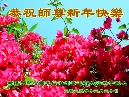 Đệ tử Đại Pháp tại thành phố Khuê Đồn, Châu tự trị dân tộc Kazakh Ili, tỉnh Tân Cương kính chúc Sư tôn năm mới vui vẻ!