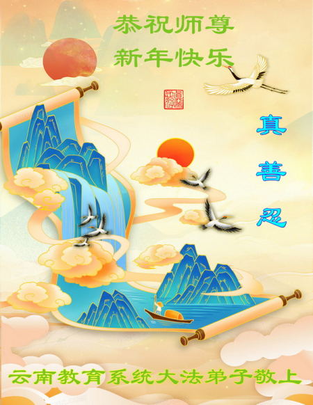 Các đệ tử Đại Pháp trong hệ thống giáo dục tỉnh Vân Nam kính chúc Sư tôn từ bi và vĩ đại năm mới vui vẻ!