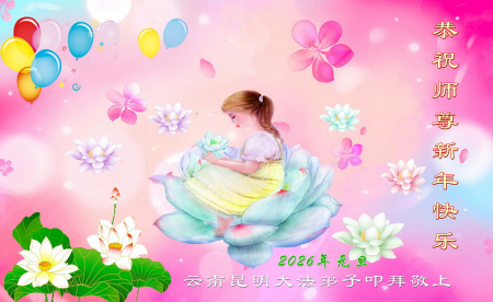 Các đệ tử Đại Pháp tại thành phố Côn Minh, tỉnh Vân Nam kính chúc Sư tôn từ bi và vĩ đại năm mới vui vẻ!