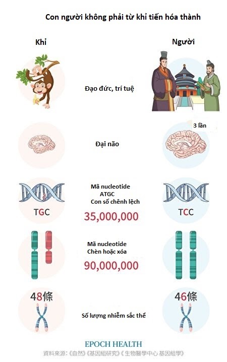 Con người không phải từ khỉ tiến hóa thành. (Ảnh: The Epoch Times)