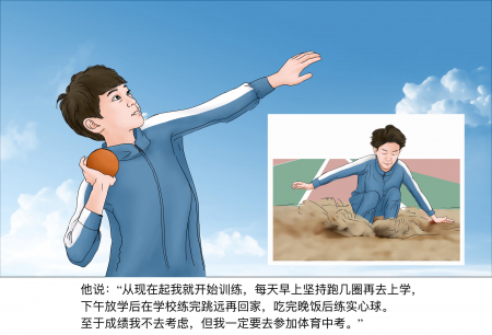 Cháu nói: “Từ bây giờ con sẽ bắt đầu tập luyện, mỗi ngày sáng sớm chạy xong mấy vòng rồi mới đi học, chiều tan học sẽ tập nhảy xa ở trường xong mới về nhà, ăn tối xong con sẽ luyện đẩy tạ”.