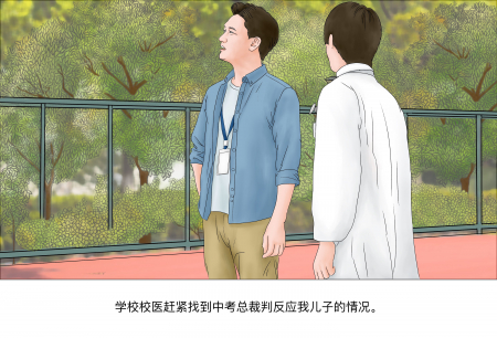 Bác sĩ của trường vội vàng tìm trọng tài chính của kỳ thi để kể lại tình huống của con trai tôi.