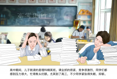 Trong thời gian học cấp ba, con tôi học lớp chuyên của khối tự nhiên. Lượng bài vở rất nặng, cạnh tranh thì khốc liệt, các học sinh ai nấy đều cảm thấy áp lực quá lớn, bận tới sứt đầu mẻ trán. Nhất là đến năm cuối cấp ba, nhiều em căng thẳng đến mức mất ngủ, trầm cảm.