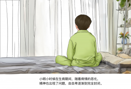 Tiểu Minh bị bệnh khi còn nhỏ, bệnh tình ngày càng nặng thêm khiến tinh thần của cháu cũng bị suy sụp, vì tự ti cháu dần dần trở nên sống khép kín.