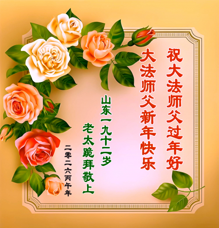 Một đệ tử Đại Pháp là cán bộ nhà máy về hưu tại Chiêu Viễn, Sơn Đông kính chúc Sư tôn năm mới vui vẻ!