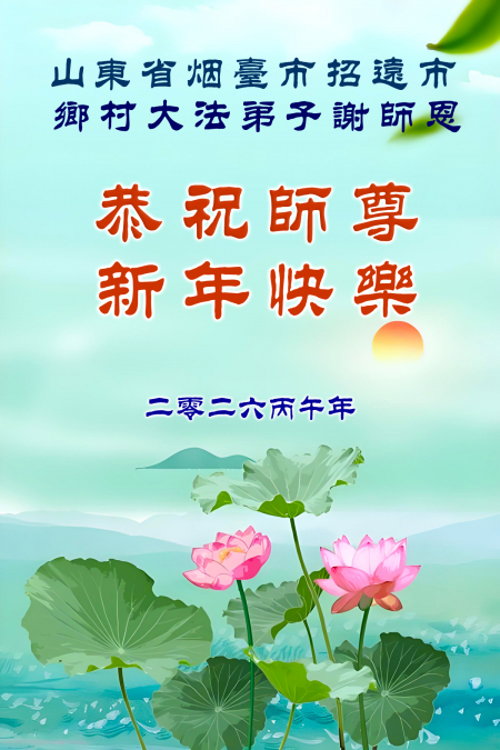 Một đệ tử Đại Pháp lâu năm tại Chiêu Viễn, Yên Đài, Sơn Đông kính chúc Sư tôn từ bi vĩ đại năm mới vui vẻ!