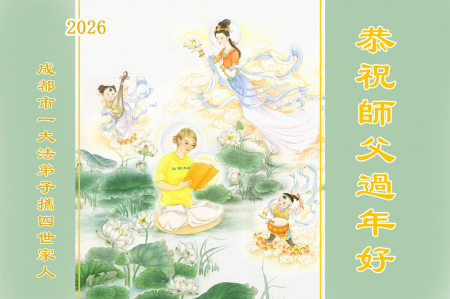 Một đệ tử Đại Pháp cùng người thân thuộc bốn thế hệ tại thành phố Thành Đô kính chúc Sư phụ năm mới vui vẻ!