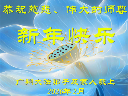 Chúng con từng phút từng giây đều được đắm mình trong Phật quang của Người, cảm ân Sư phụ luôn thời thời vất vả vì chúng con! Trong năm mới sắp đến, chúng con sẽ tiếp tục làm tốt ba việc, đón chào ngày Pháp Chính Nhân Gian sớm đến, chúng con đợi Sư phụ sớm ngày trở về Trung Quốc, đợi ngày Thần Vận có thể biểu diễn tại Đại Lục.