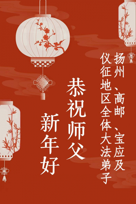 Toàn thể đệ tử Đại Pháp tại địa khu Bảo Ứng cùng Nghi Chinh, thành phố Cao Bưu, Dương Châu, tỉnh Giang Tô, kính chúc Sư tôn năm mới vui vẻ!
