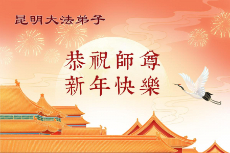 Đệ tử Đại Pháp tại Côn Minh, Vân Nam kính chúc Sư tôn từ bi vĩ đại năm mới vui vẻ!