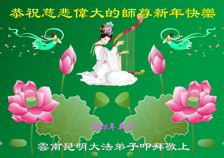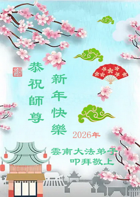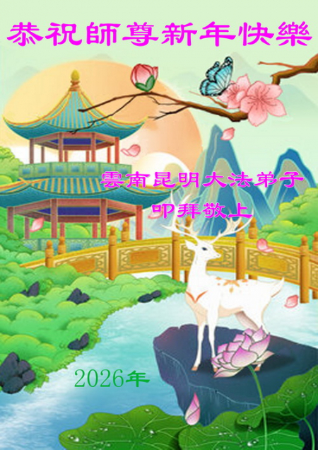 Toàn thể đệ tử Đại Pháp tại Vân Nam kính chúc Sư tôn từ bi vĩ đại năm mới vui vẻ!