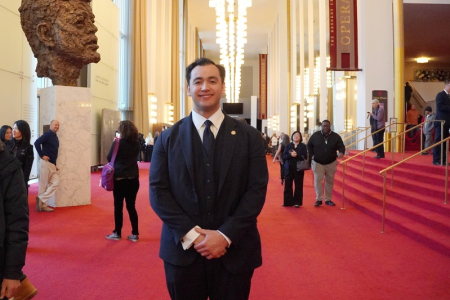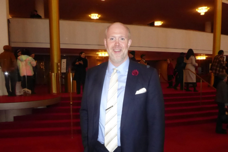 Chiều ngày 18/01/2026, cố vấn cấp cao của Quốc hội Mỹ ông Michael Sciacca đã xem buổi biểu diễn thứ 10 của Đoàn Nghệ thuật Shen Yun Thế giới tại nhà hát Opera thuộc trung tâm Kennedy (The Kennedy Center Opera House). (Ngô Nhuế Nhuế /The Epoch Times)