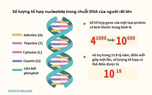 Số lượng các phương thức tổ hợp nucleotide trong chuỗi DNA của con người là rất lớn. (Ảnh: The Epoch Times)