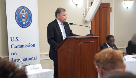 Ủy viên USCIRF ông Mohamed Elsanousi đã nêu ra một số ví dụ về những người bị bức hại vì tín ngưỡng tôn giáo. Ông nói: “Danh sách các nạn nhân không thể liệt kê đầy đủ tất cả những người bị hại. Họ thuộc nhiều tín ngưỡng, tôn giáo và truyền thống khác nhau, bao gồm Phật giáo, Kitô giáo và các học viên Pháp Luân Công. Đáng buồn là danh sách này vẫn không ngừng tăng lên.”
