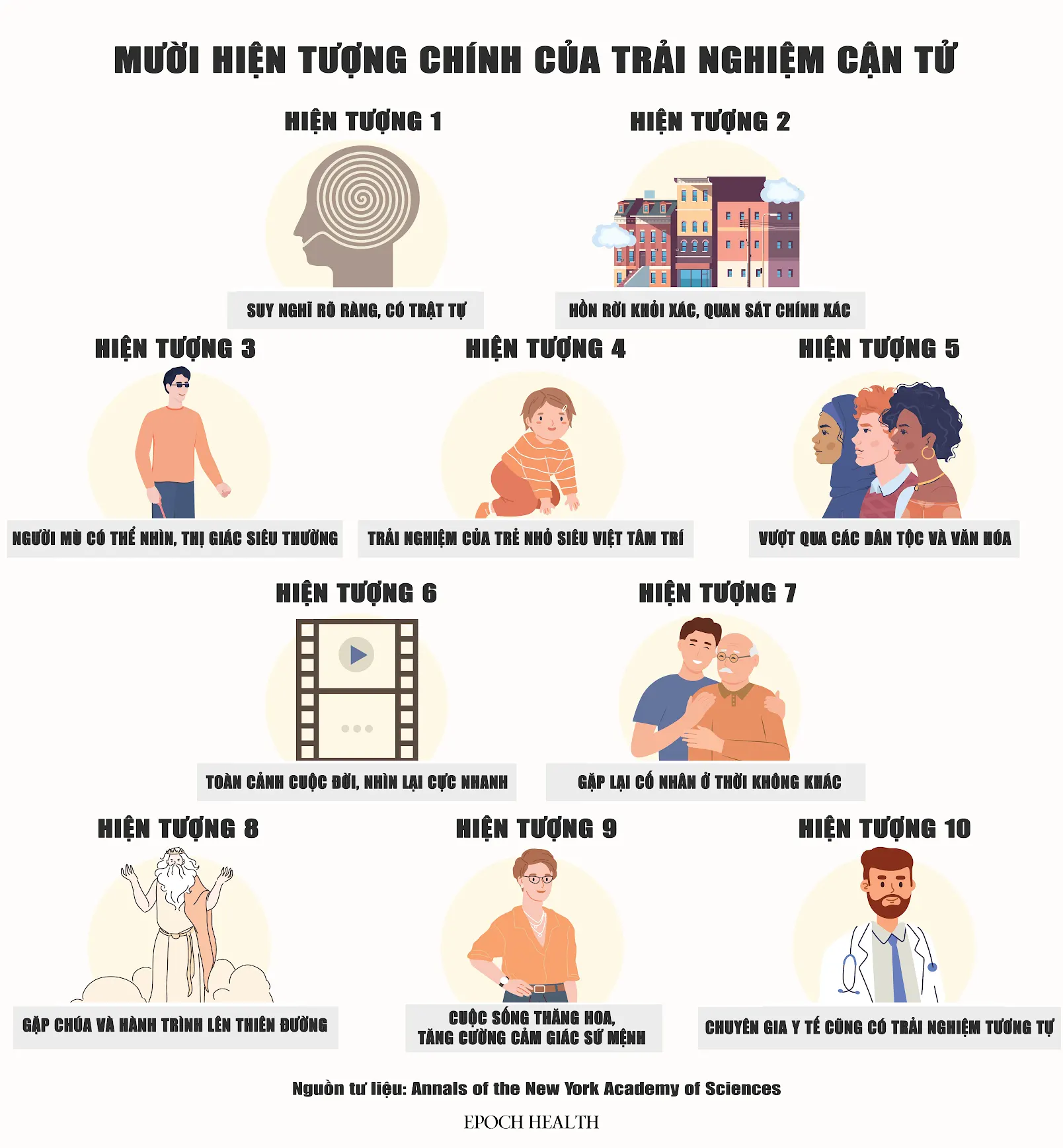 2. Mười hiện tượng chính của trải nghiệm cận tử