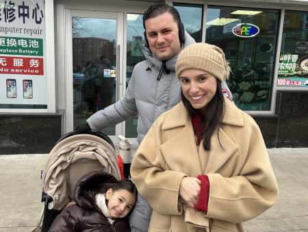 Cô Jessica cùng con gái dùng tiếng Trung gửi lời chúc đến mọi người: “Cung hỉ phát tài, năm mới vui vẻ.” (Ảnh: Vương Lệ Phi/The Epoch Times)