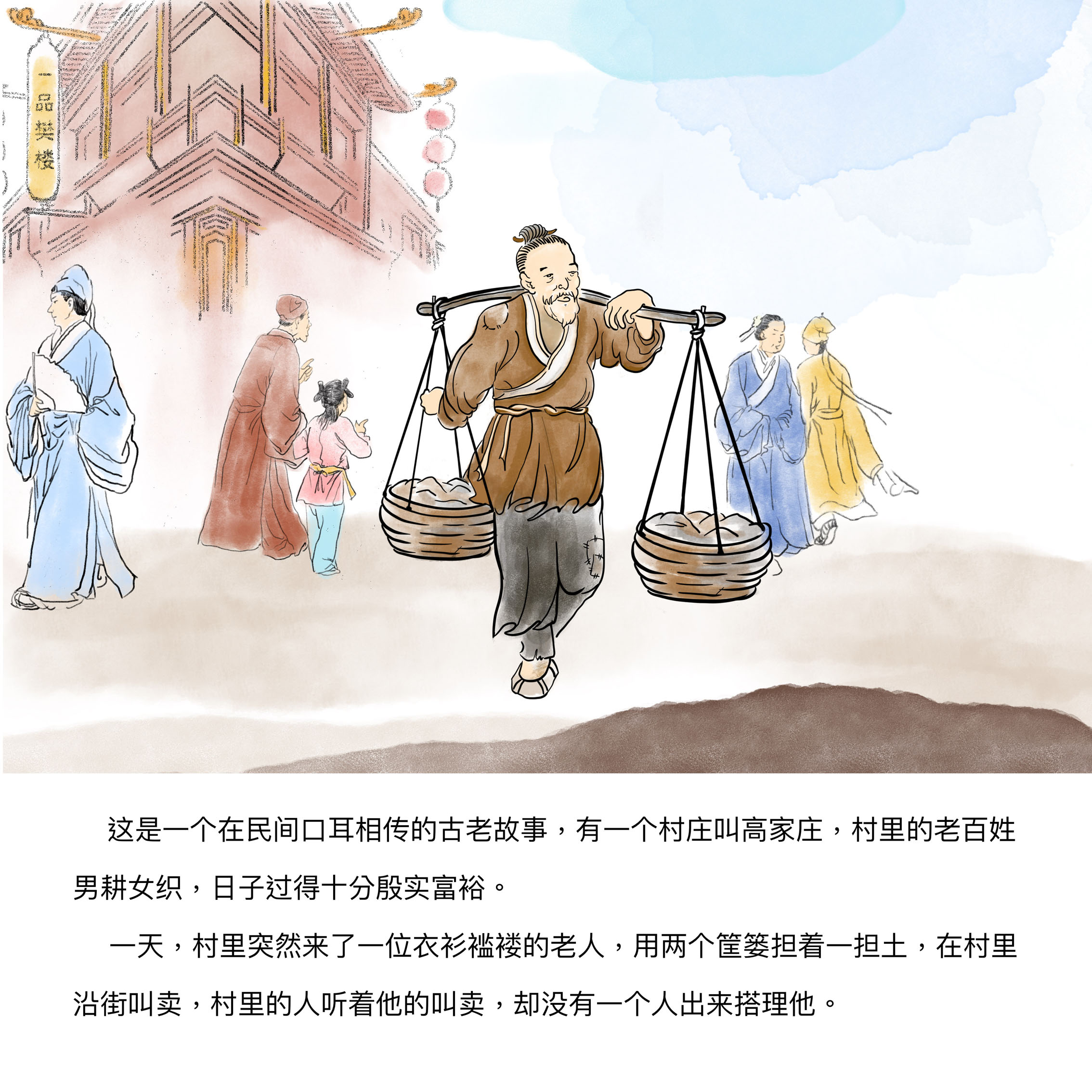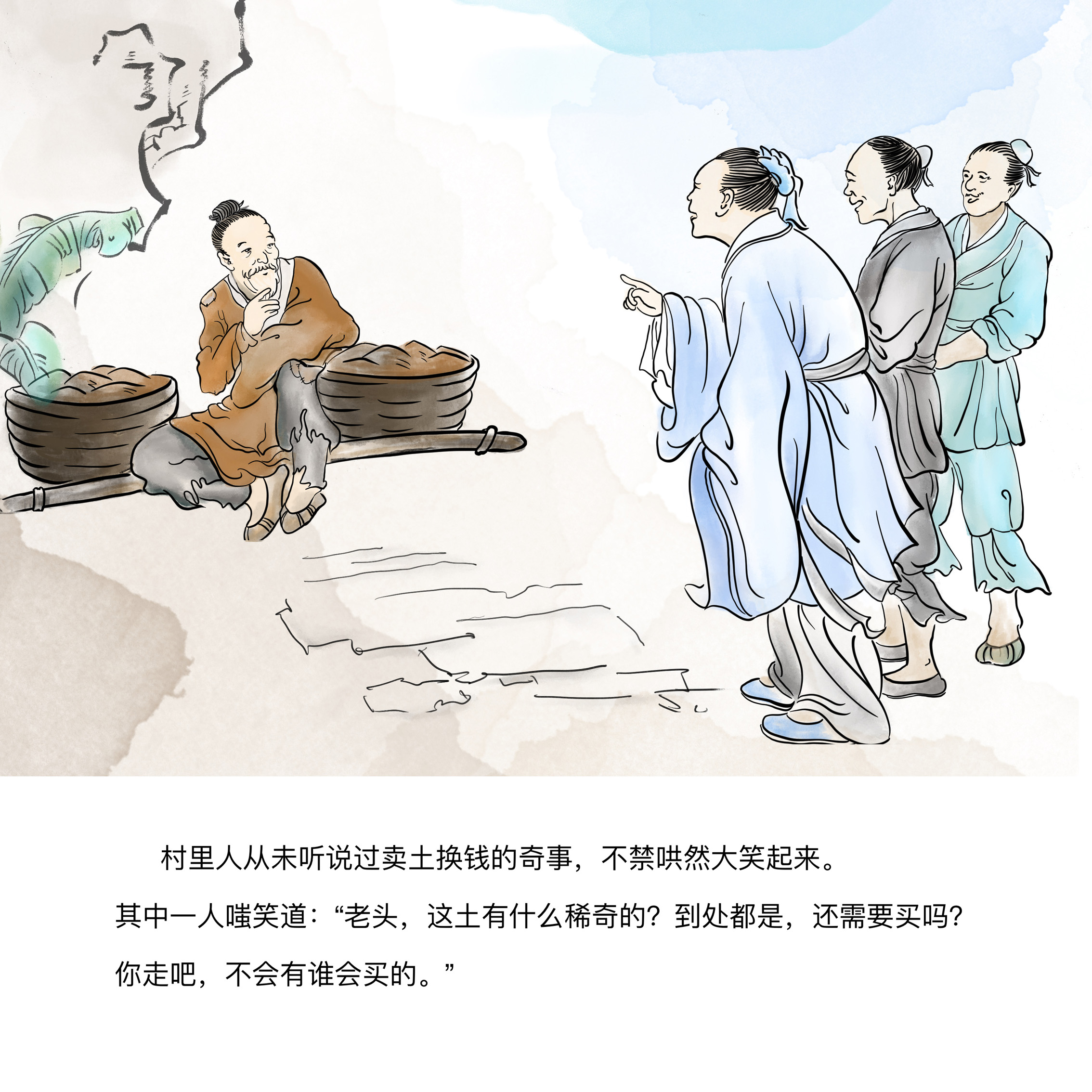 Bỗng một hôm, trong thôn xuất hiện một ông lão ăn mặc rách rưới, trên vai gánh hai chiếc giỏ tre, trong giỏ chứa đầy đất, ông lão vừa gánh đất đi dọc các con đường trong thôn vừa rao bán, người trong thôn nghe tiếng rao, không ai bước ra hỏi han cũng không ai thèm để mắt tới ông.
