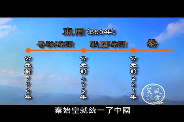 Thời Đông Chu có khoảng 550 năm. Từ năm 770 trước công nguyên (TCN) đến năm 475 TCN, khoảng thời gian 300 năm này được gọi là thời kỳ Xuân Thu. Từ năm 475 TCN đến năm 221 TCN được gọi là thời kỳ chiến quốc. Đến năm 221 TCN, Tần Thủy Hoàng thống nhất Trung Quốc. (Ảnh: Tân Đường Nhân)