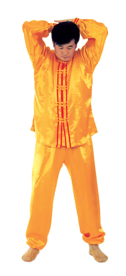 Song long hạ hải[7]: Bắt đầu từ thế “hợp thập”, hai tay vừa tách nhau ra, vừa duỗi ra phía trước. Khi hai tay tách ra để song song và duỗi thẳng, thì tạo một góc khoảng 30° so với bắp chân (như hình 1.11). Toàn thân dần dần kéo thẳng, đầu dựng lên, chân đạp xuống, kéo căng khoảng 2~3 giây đồng hồ, sau đó toàn thân lập tức buông lỏng, thu tay trở về, và “hợp thập” trước ngực.