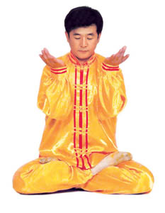 Công lý: “Thần Thông Gia Trì pháp” là thuộc về pháp tu luyện tĩnh công của Pháp Luân Công, là công pháp mà dùng thủ ấn của “Phật” xoay chuyển “Pháp Luân” gia trì thần thông (gồm cả công năng) và đồng [thời] tu luyện nhiều hạng công lực. Bài pháp này thuộc về công pháp trung tầng trở lên, nguyên là thuộc về pháp ‘bí luyện’[24]. Vì để thoả mãn yêu cầu của những người đã có cơ sở nhất định, [tôi] đặc biệt truyền xuất bài công pháp này ra, truyền ra độ những người có duyên. Bài công pháp này yêu cầu luyện trong khi ngồi xếp bằng, tốt nhất là ngồi song bàn, dùng đơn bàn cũng khả dĩ[25]. Khi tu luyện thì dòng khí khá mạnh mẽ, trường năng lượng ngoài [thân] thể khá to lớn. Động tác được làm thuận theo khí cơ mà Sư phụ đã cài, khi di động tay thì tâm động theo ý[26]. Khi gia trì thần thông, thì ‘ý không’, tiềm ý thức hơi hơi ở tại hai bàn tay. Lòng bàn tay sẽ có cảm giác nhiệt, nặng, điện tê, tựa như có vật, v.v. Nhưng không được dùng ý truy cầu, hãy ‘tuỳ kỳ tự nhiên’. Thời gian ngồi xếp bằng yêu cầu càng lâu càng tốt, mà căn cứ theo công mà định[27], thời gian càng lâu, cường độ càng lớn, xuất công càng nhanh. Khi luyện công, (không suy nghĩ gì hết, không có bất kể ý niệm gì) thì dần dần nhập tĩnh, từ trạng thái của động công là ‘tự tĩnh phi định’[28] mà dần dần nhập định. Nhưng chủ ý thức biết rằng mình đang luyện công.