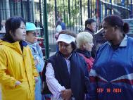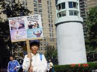 Vào buổi chiều tối, khi tôi đang phân phát tài liệu giảng rõ sự thật tại góc đường, lưng của tôi hướng về phía Broadway. Thình lình tôi quay lại, và thấy một người Trung Quốc đứng phía sau tôi. Ông ta ngồi trên xe đạp và nhìn chúng tôi có vẻ ngạc nhiên, thương hại và mỉa mai. Tôi đi đến và cười với ông, đưa cho ông mấy tờ tài liệu. Ông ta không nhận, và nói một cách mỉa mai “có phải Pháp Luân Công không?” Ông ta trở nên khó chịu, mỉa mai một cách rỏ rệt. Tôi nói “Xin bác đọc đi, chúng tôi đến đây từ một thành phố khác, xa lắm. Bác thấy mấy người đó không, họ là những người trí thức, có bằng cấp cao, là giảng sư, bác sĩ. Tất cả chúng tôi đến đây là để nói sự thật về Pháp Luân Công cho mọi người tại Nữu Ước được biết rằng Pháp Luân Công thật sự tốt và chính sách khủng bố là sai” Gương mặt ông ta diụ xuống và hỏi tôi “Cháu có tài liệu bằng chữ Hán không?” Tôi tìm một số tài liệu bằng Hán ngữ và dĩa về vụ tự thiêu Thiên An Môn và đưa cho ông ta. Ông ta vui vẻ nhận lấy và để vào túi. Sau đó ông ta chia tay và đạp xe đi.