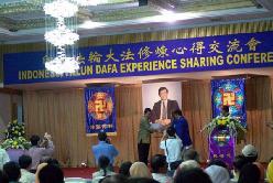 Tổng hội Thể dục thể thao Sumatra trao tặng một giải thưởng cho Pháp Luân Đại Pháp Indonesia, ông Hứa Văn Thái thay mặt cho các học viên nhân giải