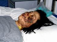 Gương mặt của cô Cao Dung Dung bị phá hủy bỡi những cây điện giựt