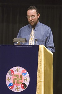 Ông George Stamm sáu mươi tuổi người tây phương từ San Diego phát biểu rằng, trước khi học Pháp Luân Công ông vốn có thân thể khoẻ mạnh rồi, nhưng ông không tìm thấy ý nghĩa cuộc đời. Ông tin Chúa ngay từ thời trẻ, nhưng đọc Thánh Kinh không đưa lại những câu trả lời cho tất cả thắc mắc về cuộc đời của mình. Con trai ông, vốn nghiên cứu tiếng Hoa, đã giới thiệu môn Pháp Luân Đại Pháp cho ông, và sau khi tham dự Pháp hội Los Angeles hồi tháng Hai, ông đã bắt đầu học Pháp Luân Công và đọc sách hàng ngày. Ông bỏ hẳn rượu và thay đổi trở thành người có tính tình hiền lành hẳn. Ông nói rằng nhờ học Pháp Luân Đại Pháp đã giúp ông có những thay đổi ấy. Bây giờ ông hiểu rằng cần giúp người dân thế giới hiểu về sự thật của cuộc đàn áp Pháp Luân Công tại Trung Quốc.